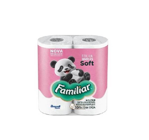 PAPEL HIGIENICO FAMILIAR SOFT FOLHA SIMPLES COM 4 ROLOS 30M